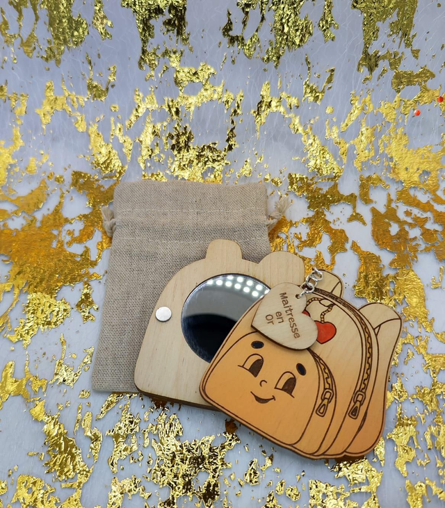 Miroir en forme de sac à dos, un accessoire de toilette innovant conçu pour les maîtresses. Cette création originale marie praticité et fantaisie, transformant un objet essentiel en présent singulier et touchant. Modelé avec soin, le miroir épouse les lignes caractéristiques d'un petit sac à dos, créant une harmonie entre forme fonctionnelle et design ludique. Idéal pour témoigner votre reconnaissance en fin d'année scolaire ou lors d'occasions particulières, cet accessoire devient un souvenir précieux que les maîtresses garderont avec plaisir. Un choix délicat pour honorer celles qui portent quotidiennement le poids de l'éducation et de l'accompagnement de nos enfants.