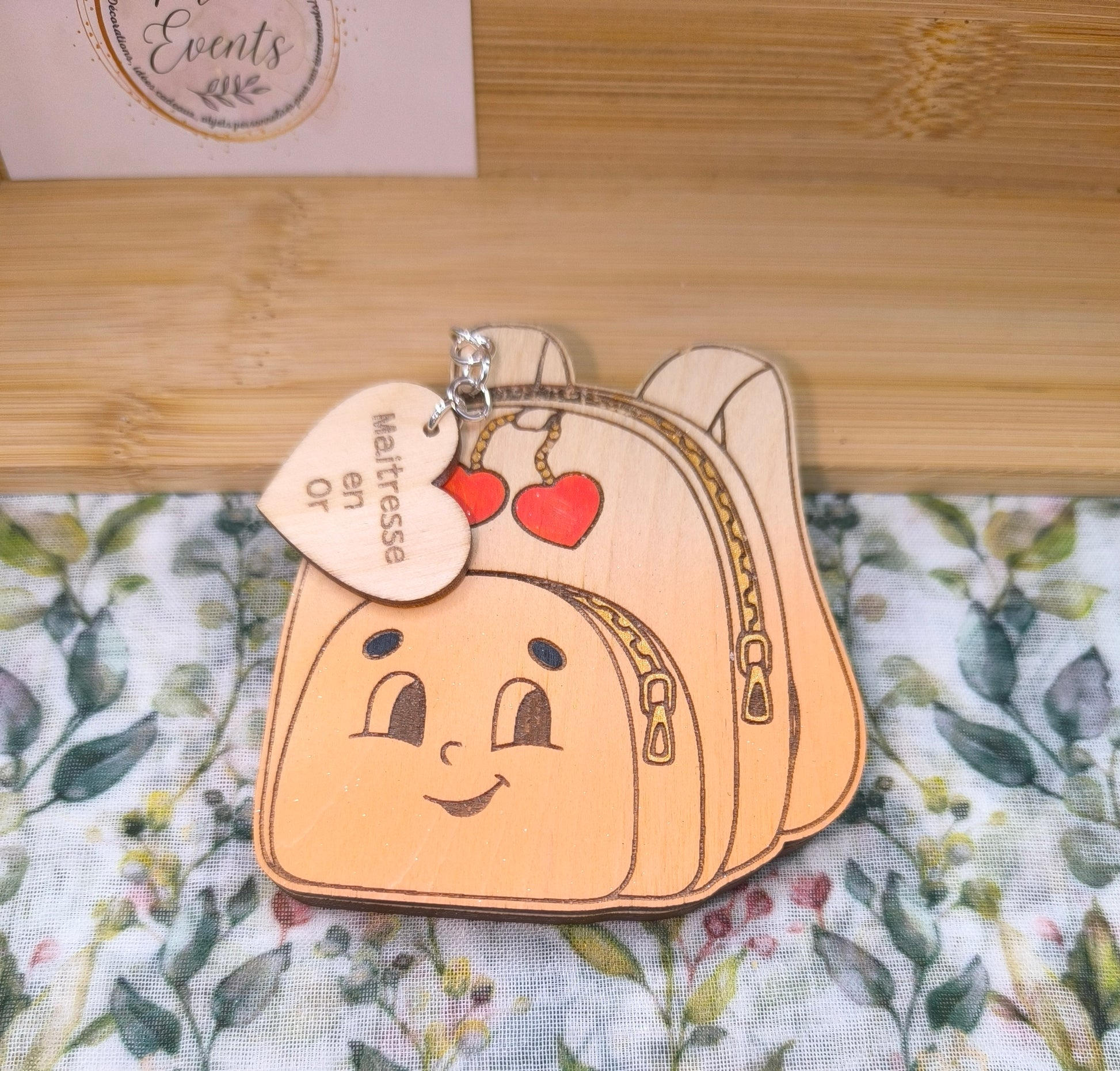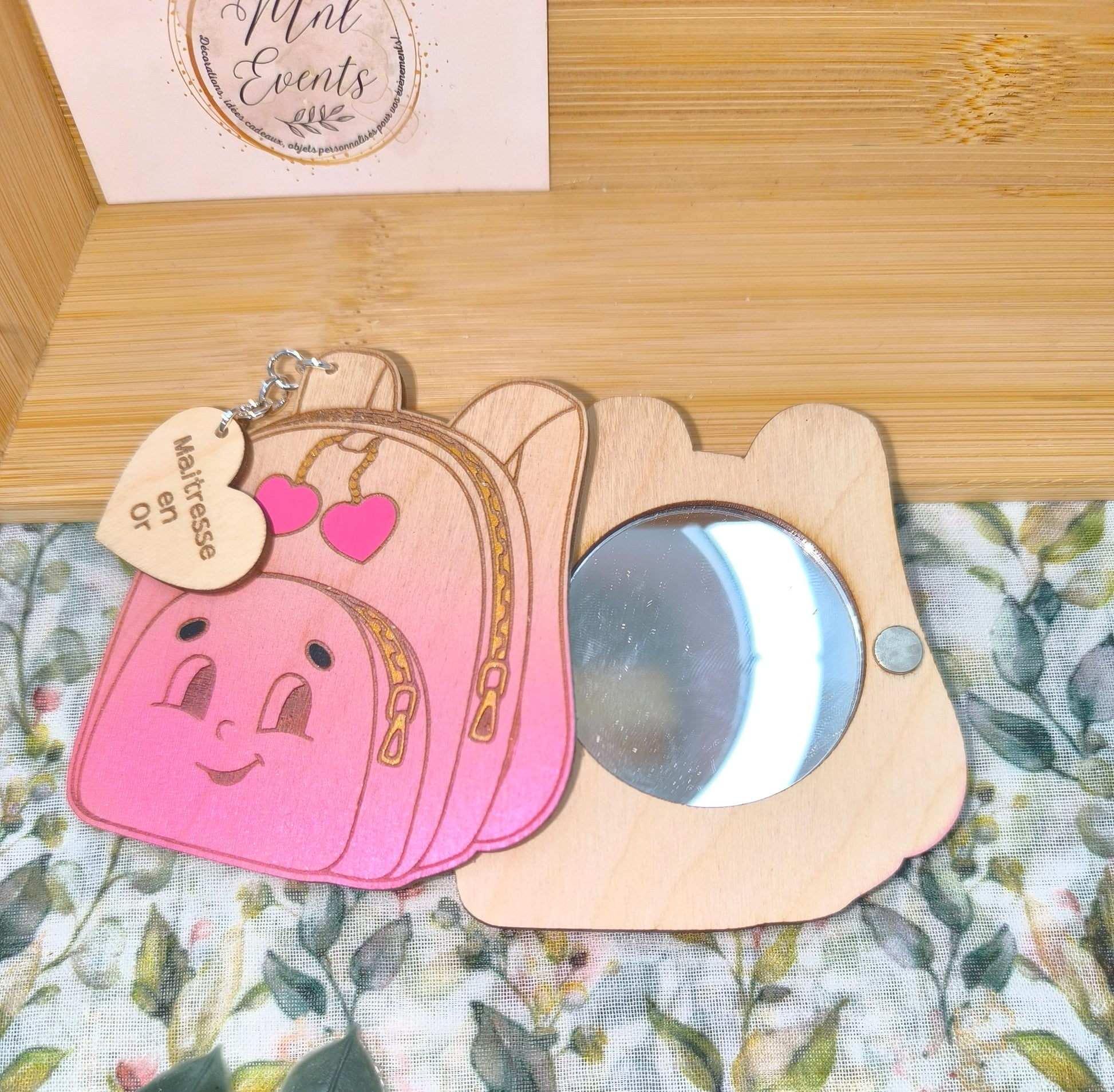 Miroir en bois en forme de sac à dos pour remercier les maîtresses