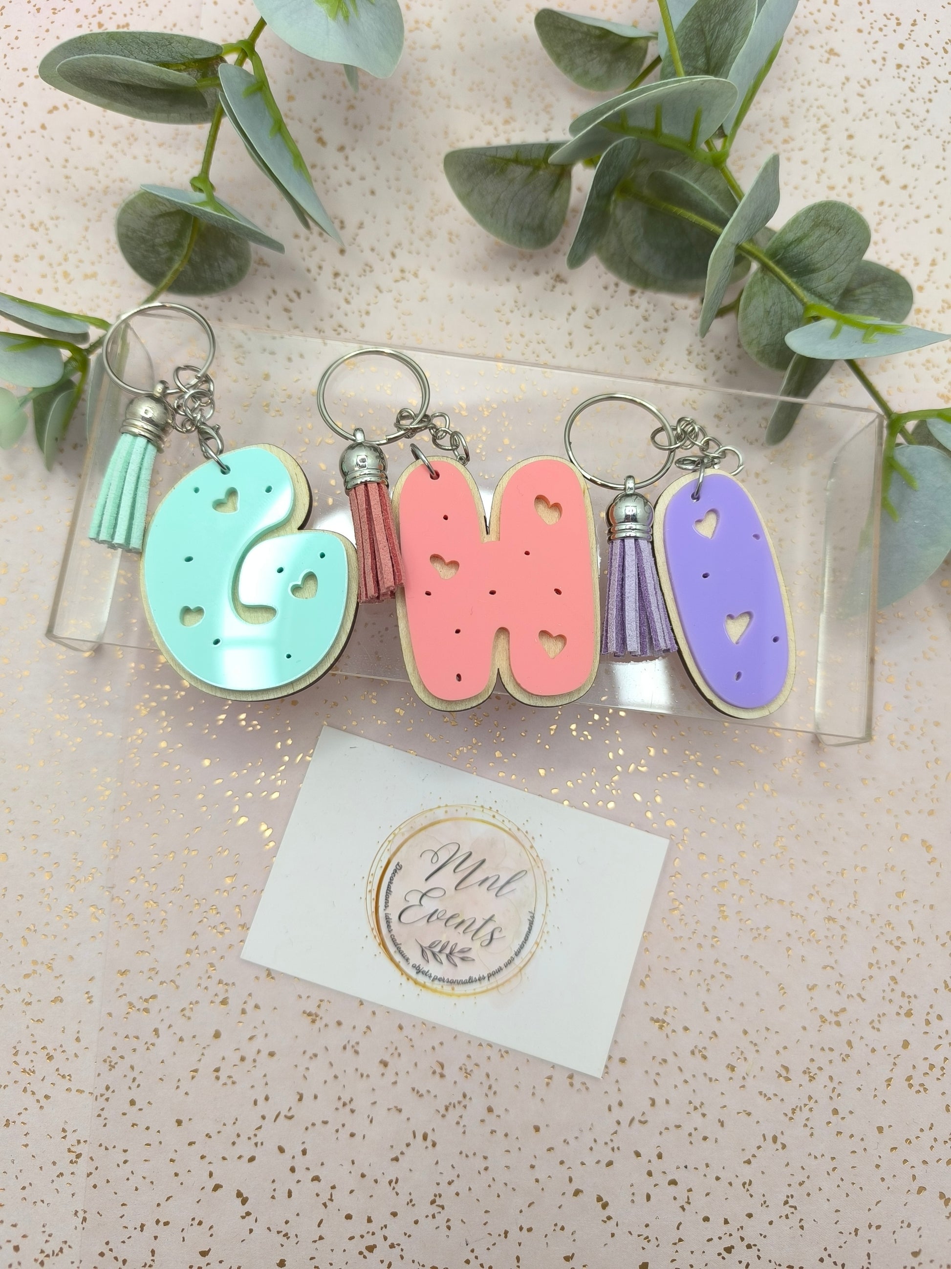 Fabriqué avec du bois et de l'acrylique, ce porte-clés en alphabet apportera une touche ludique et colorée à vos clés. Disponible en douces nuances pastel, il est également solide et durable. Ne perdez plus jamais vos clés grâce à ce porte-clés unique et pratique !