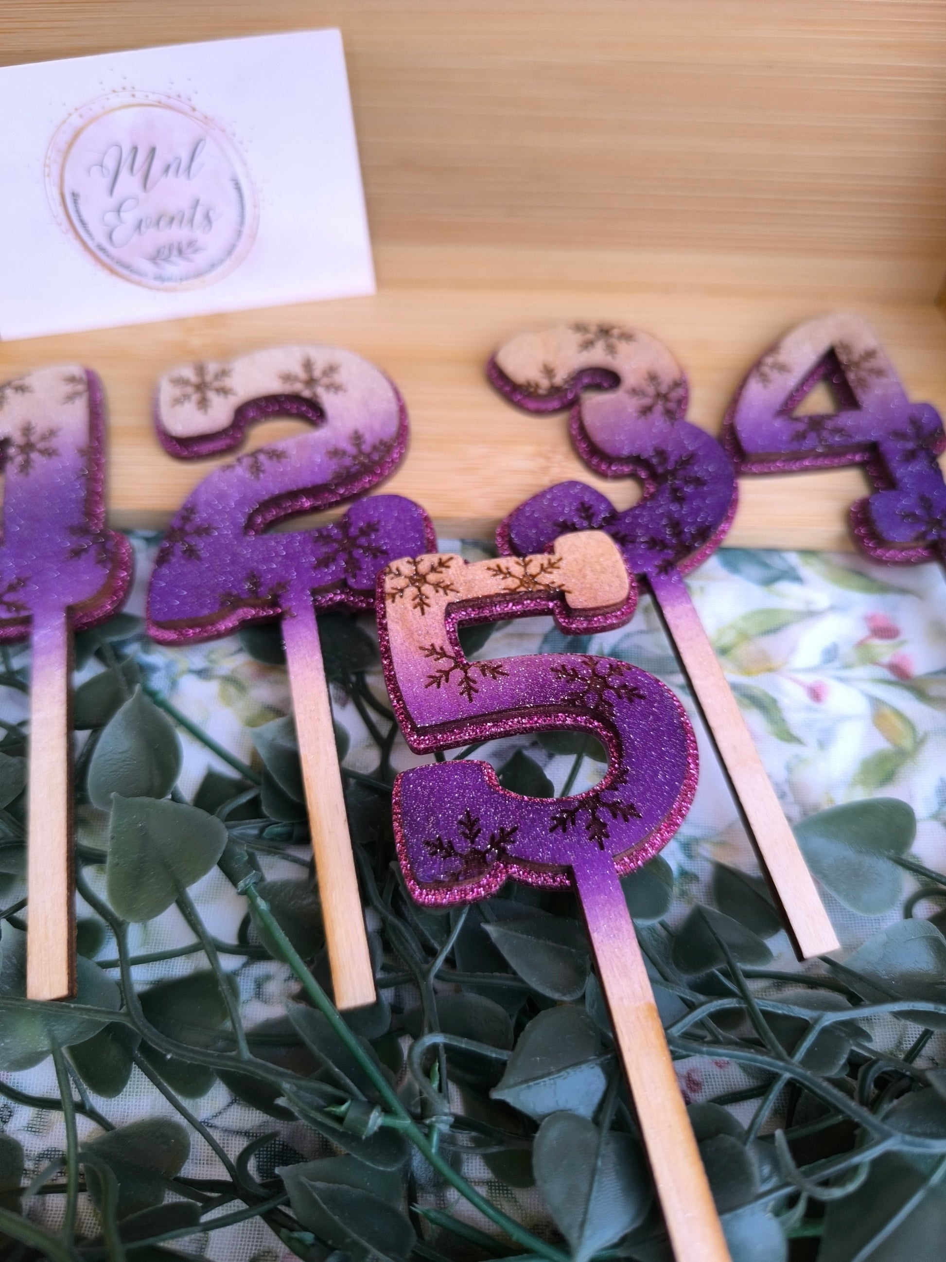 Topper chiffre élégant en bois et acrylique, inspiré de l'univers Reine des neiges. Fabriqué avec précision pour sublimer vos gâteaux d'anniversaire. La combinaison des matériaux offre un contraste raffiné entre le naturel du bois et la modernité de l'acrylique. Personnalisez votre célébration avec cette décoration thématique de qualité professionnelle.